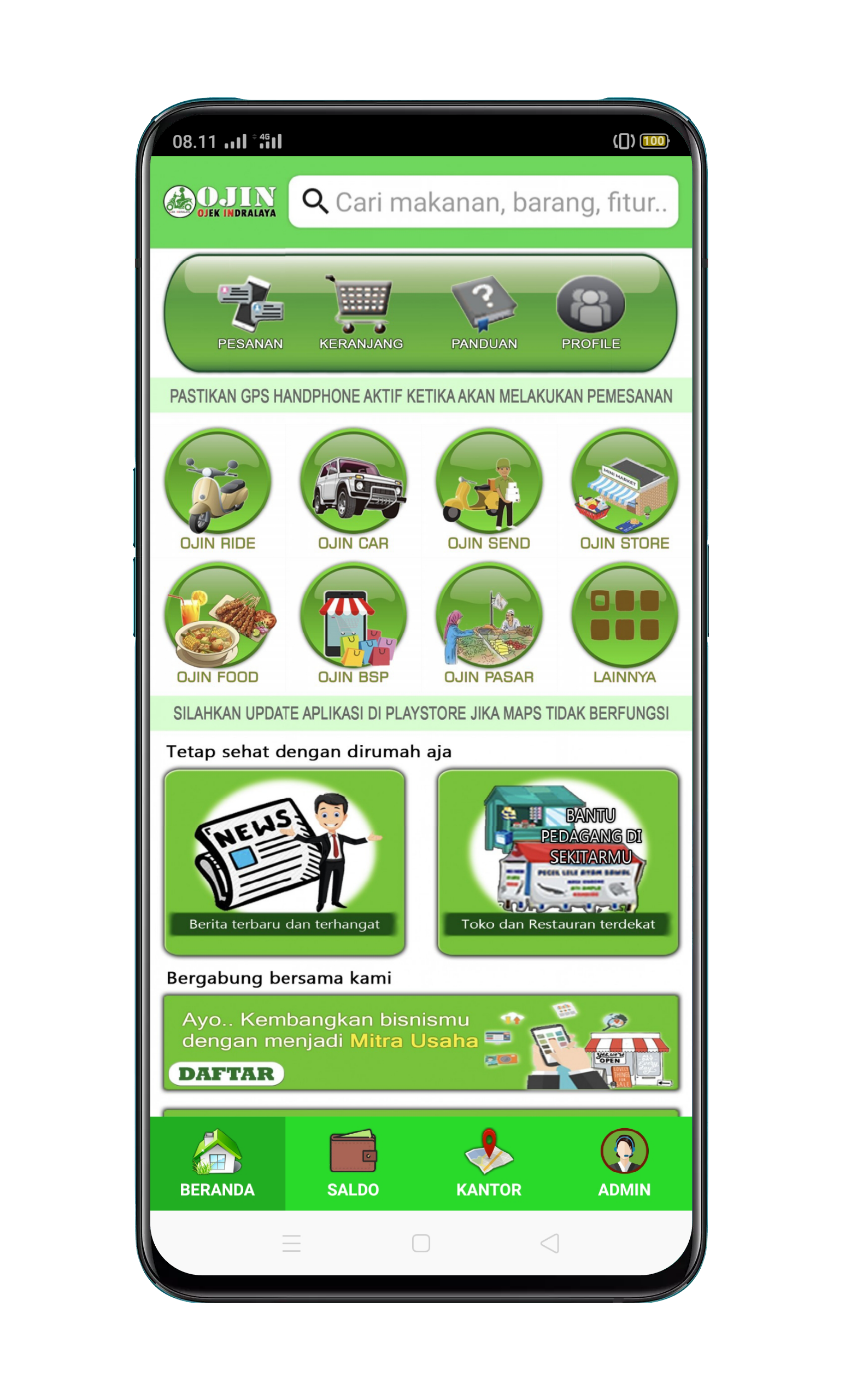 - OJIN bekerjasama dengan banyak Mitra Usaha, sehingga banyaknya pilihan menu makanan dan barang yang bisa kita lihat dan pesan langsung melalui aplikasi.