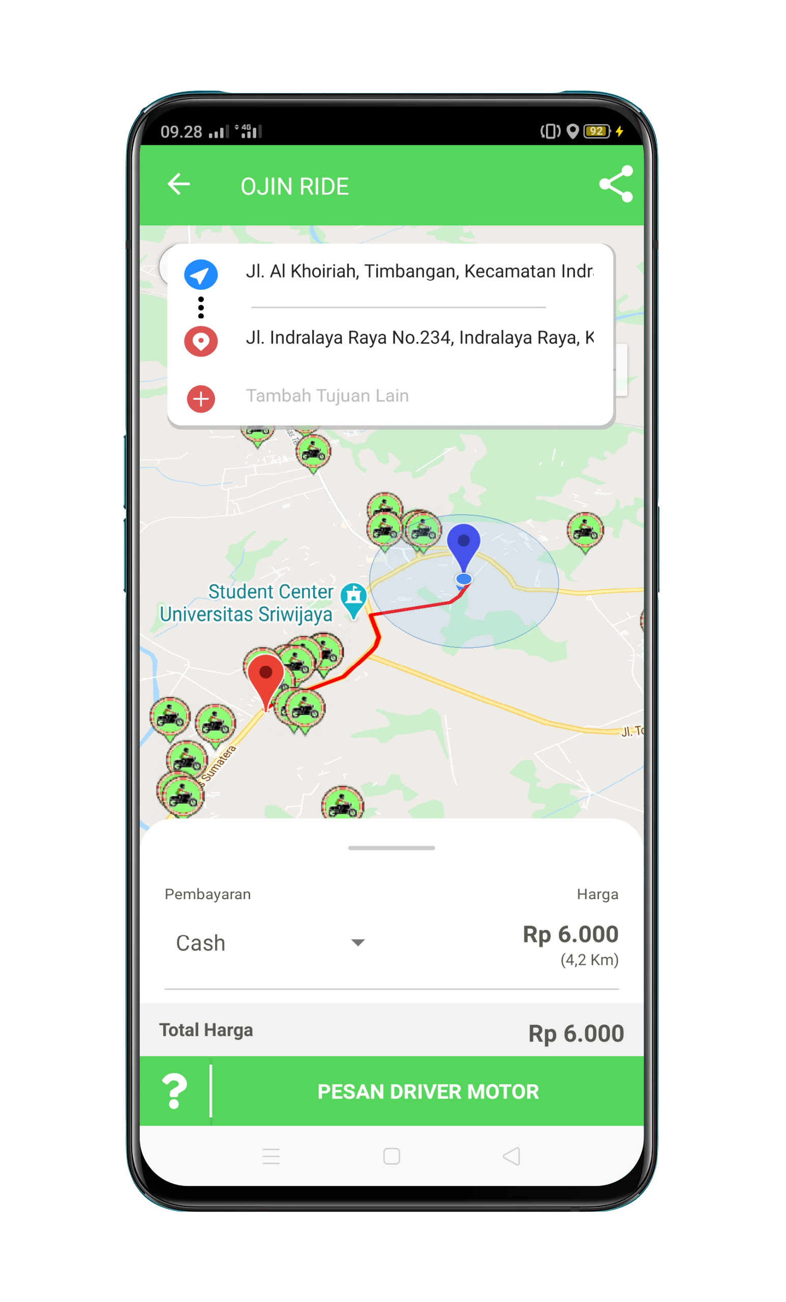 - Driver OJIN sudah cukup banyak dan berpengalaman, dapat dikenali dengan melihat seragam jaketnya. Driver juga terverifikasi dan bisa terpantau langsung dengan melihat tampilan maps pada aplikasi Pengguna.